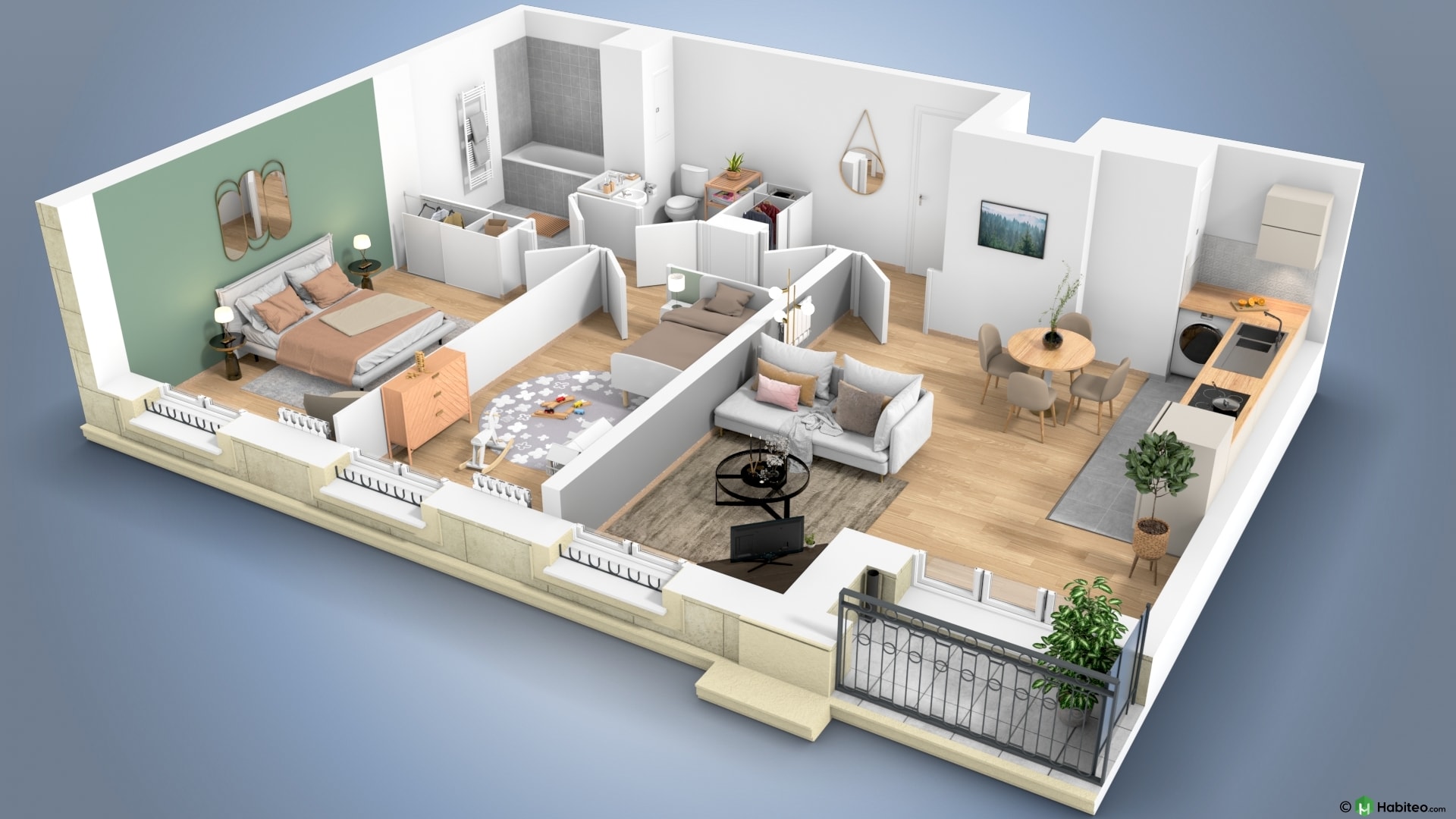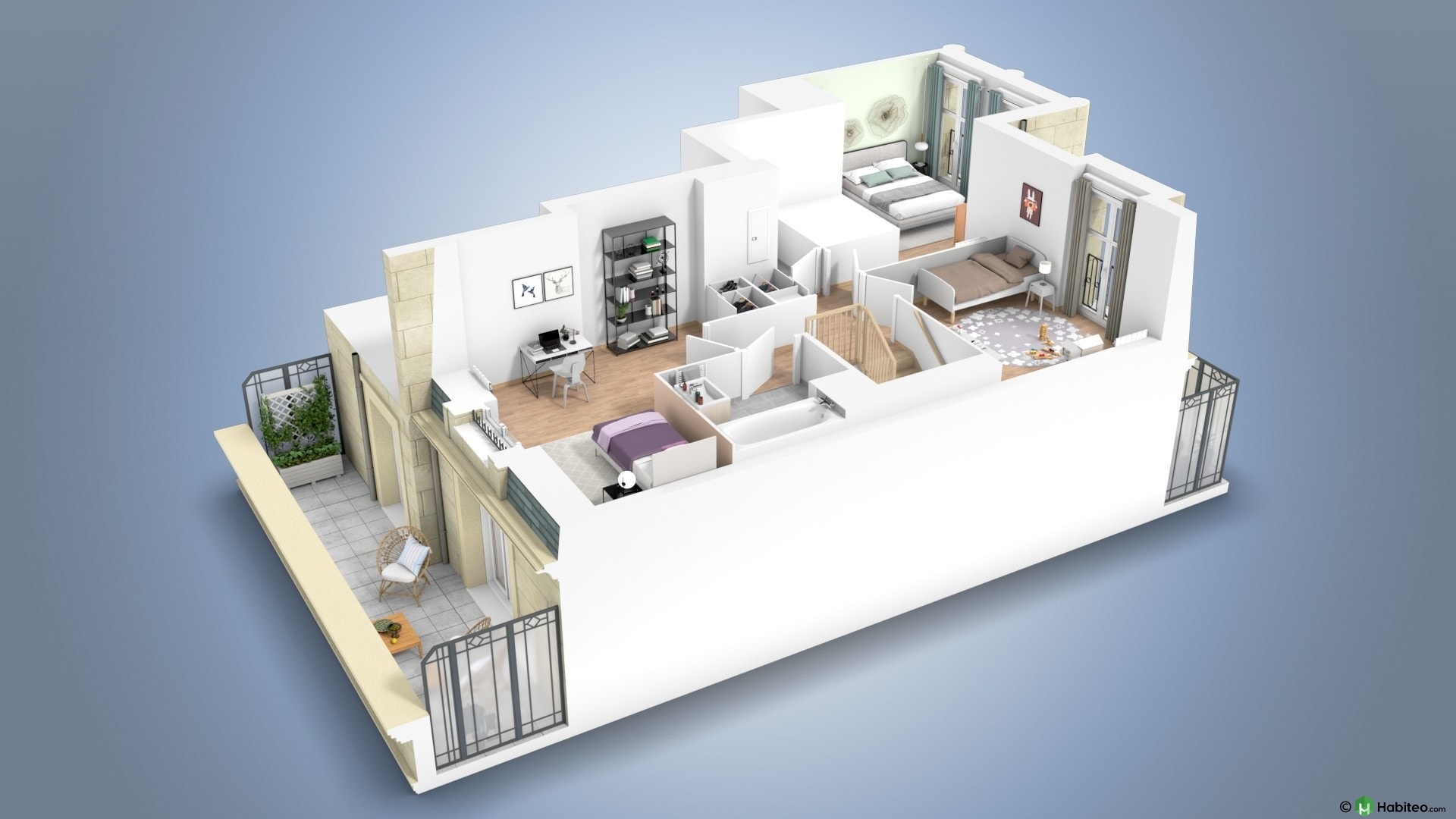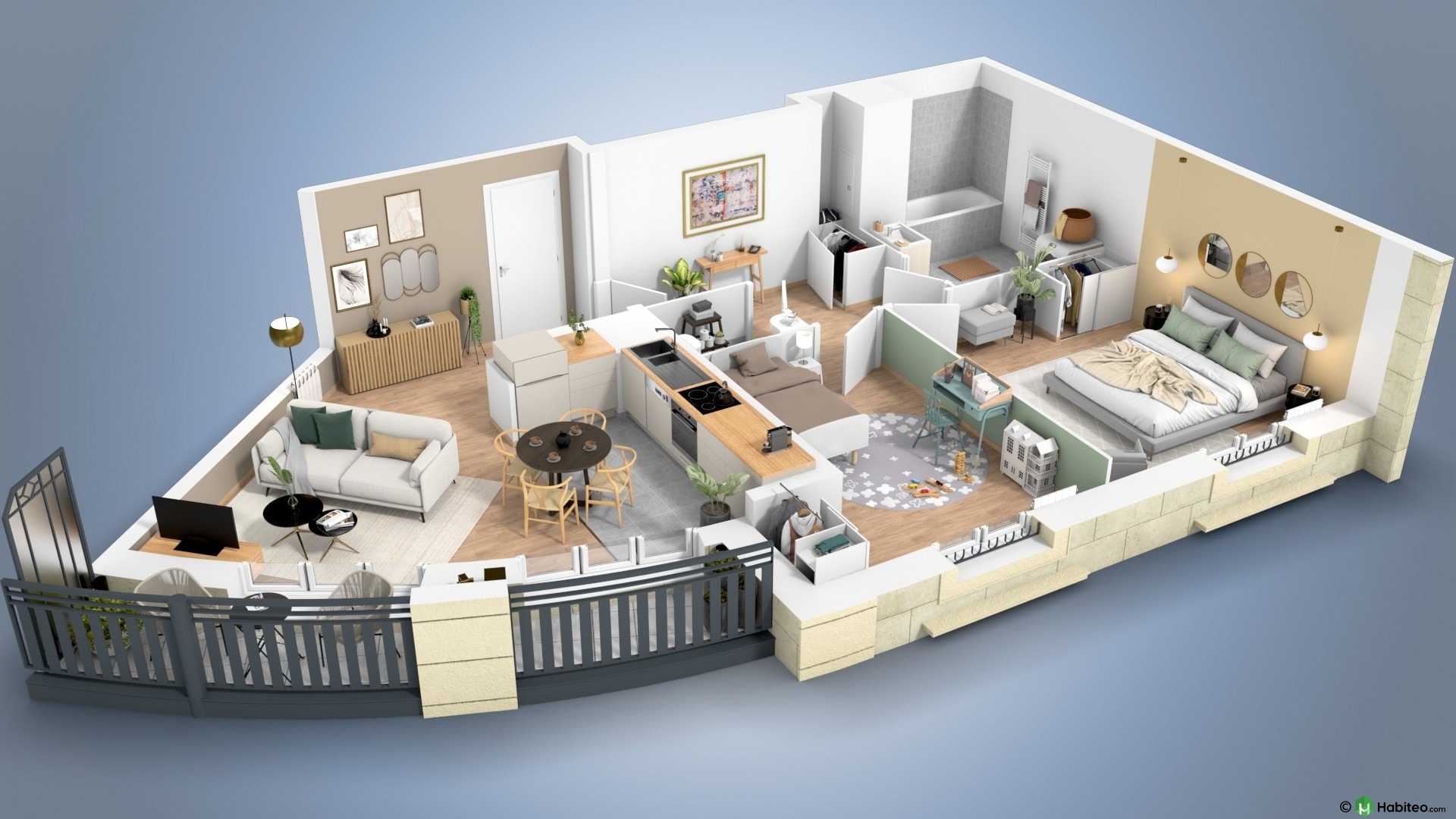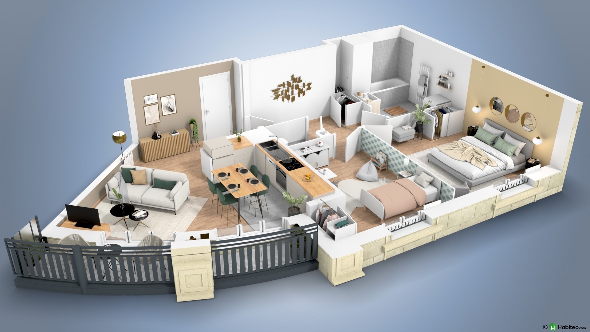 de l’appartement qui vous intéresse pour accéder à une vue 3D, non contractuelle à caractère d’ambiance