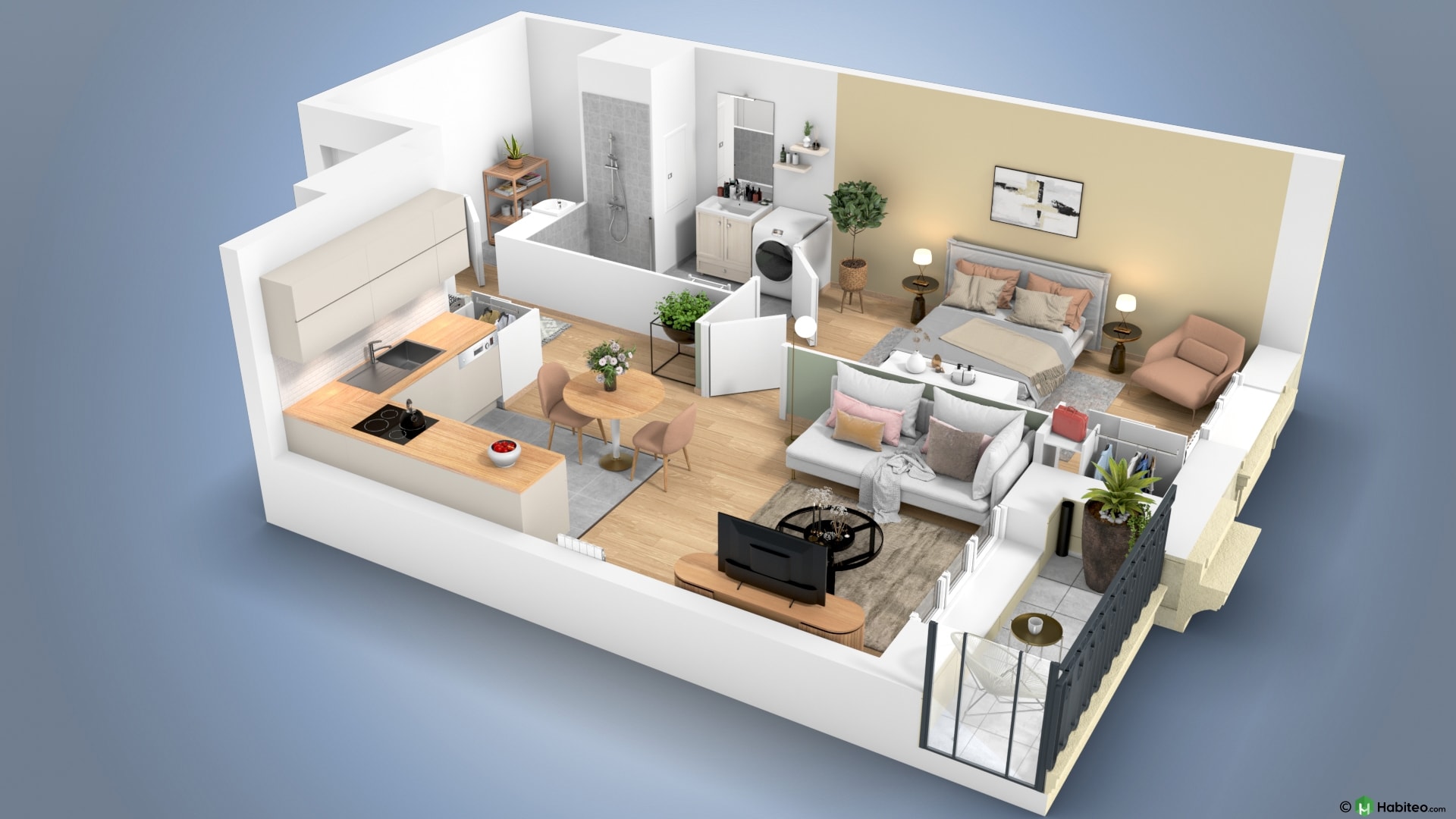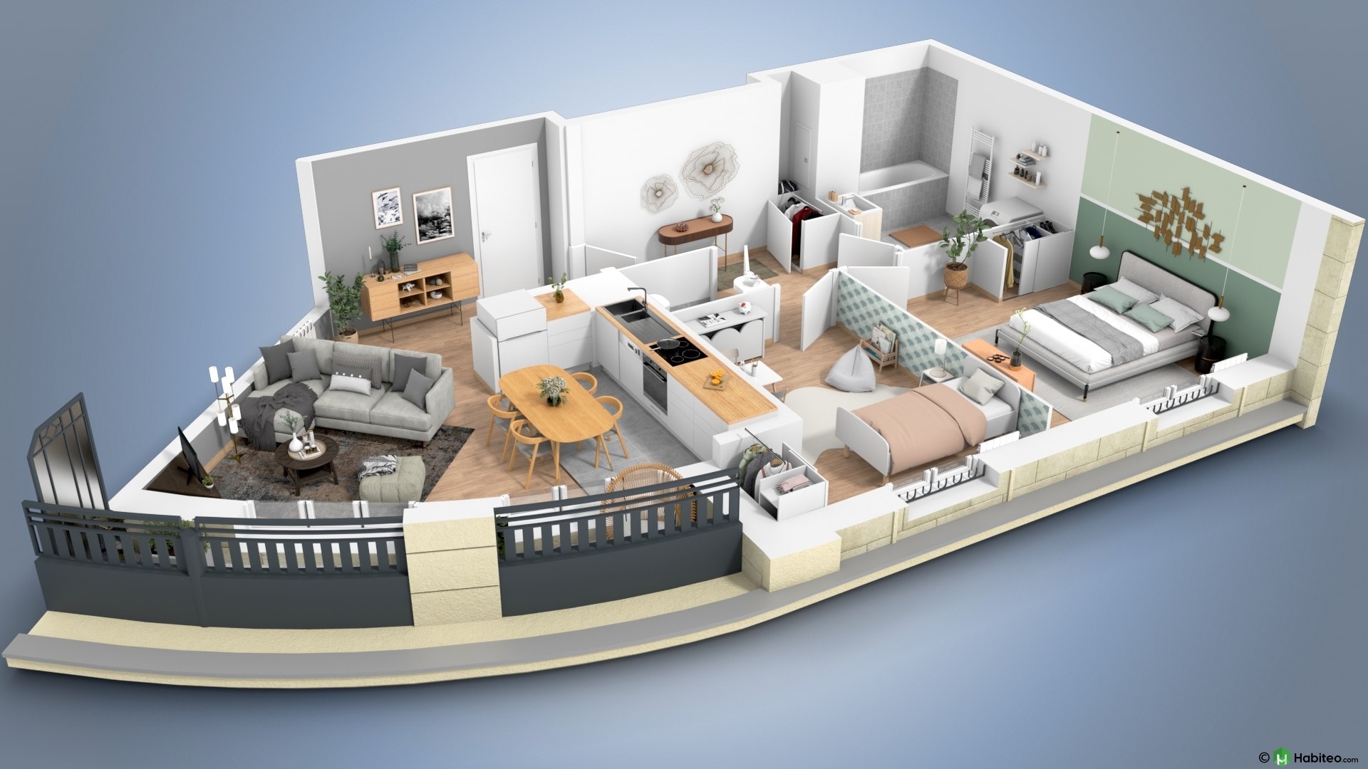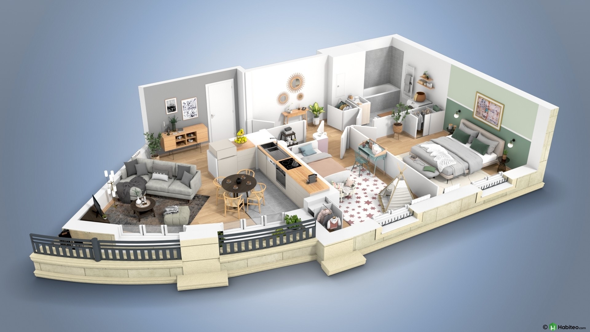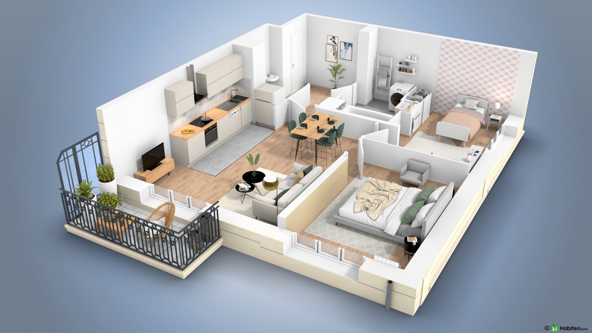 de l’appartement qui vous intéresse pour accéder à une vue 3D, non contractuelle à caractère d’ambiance