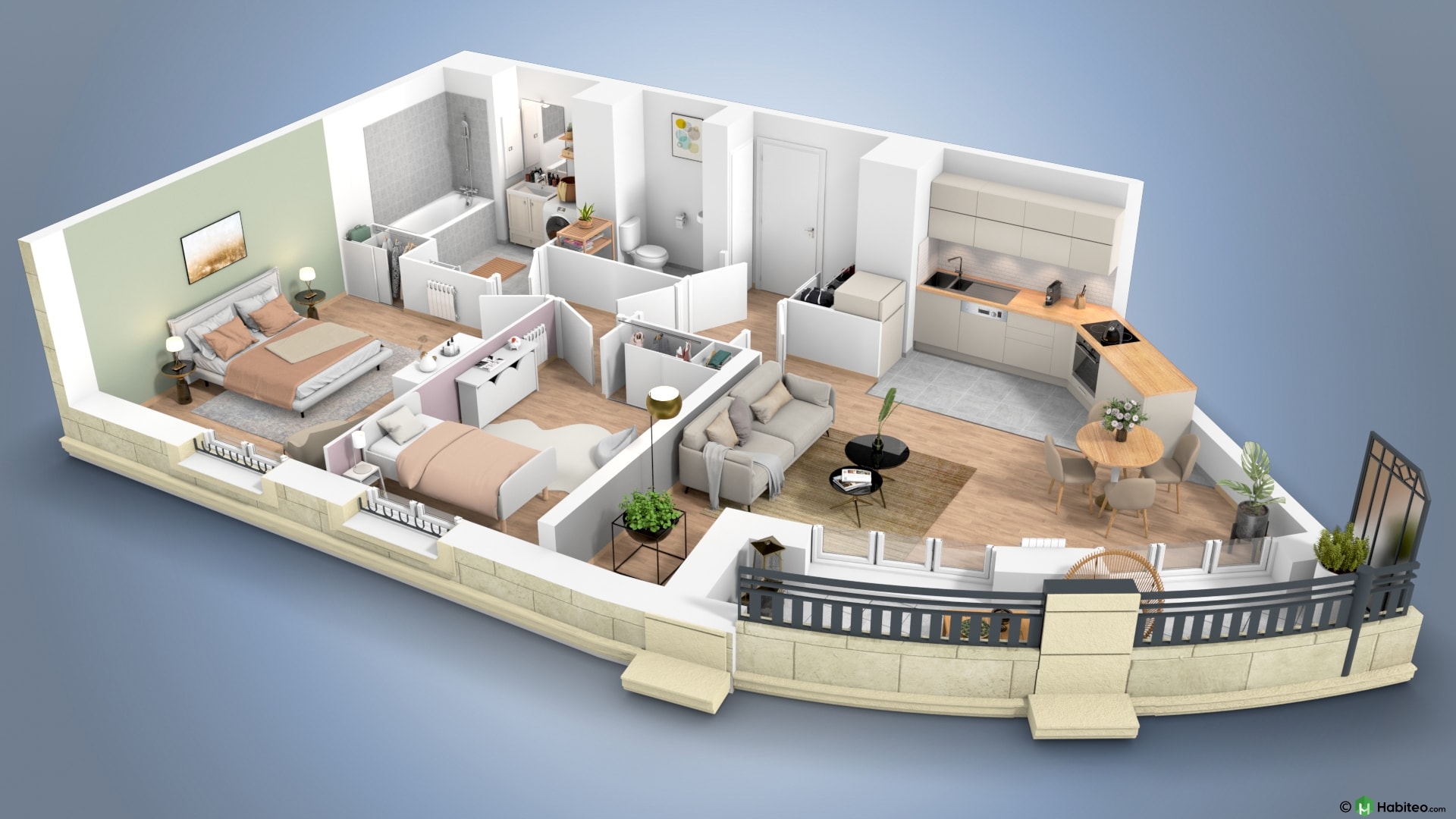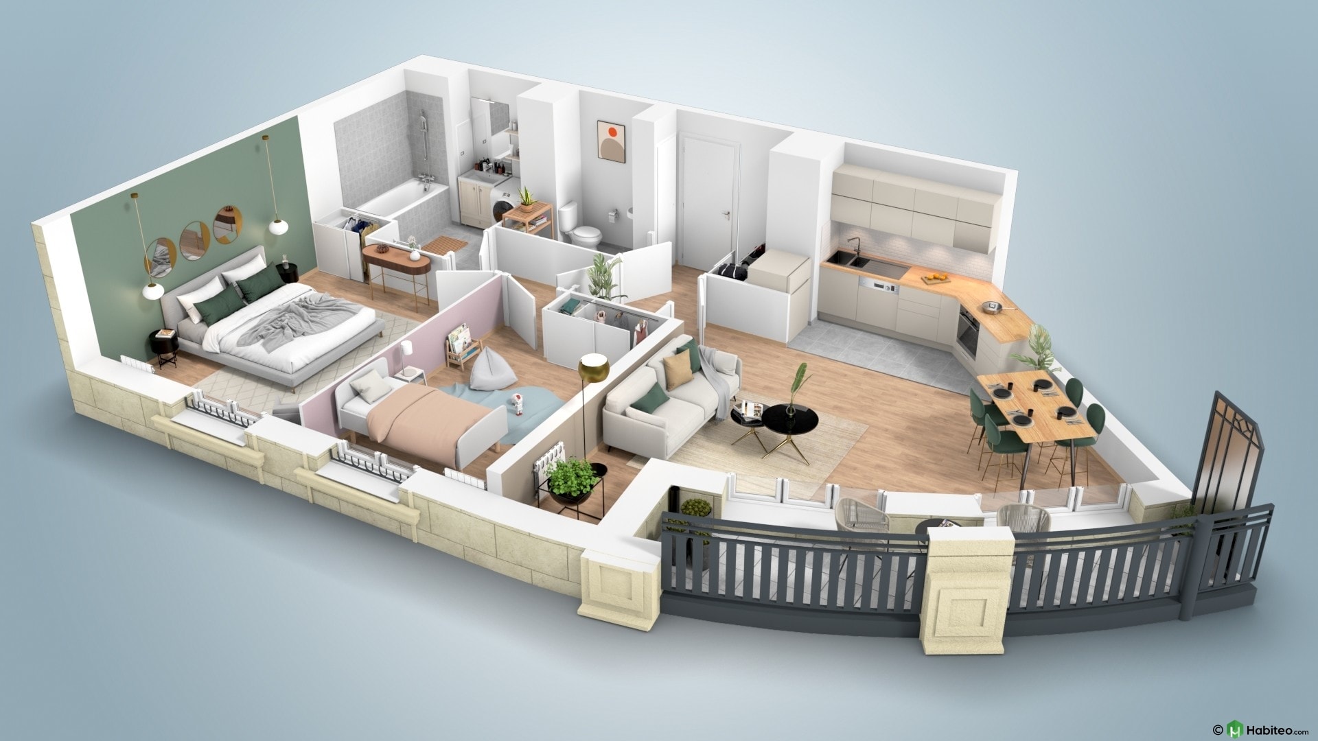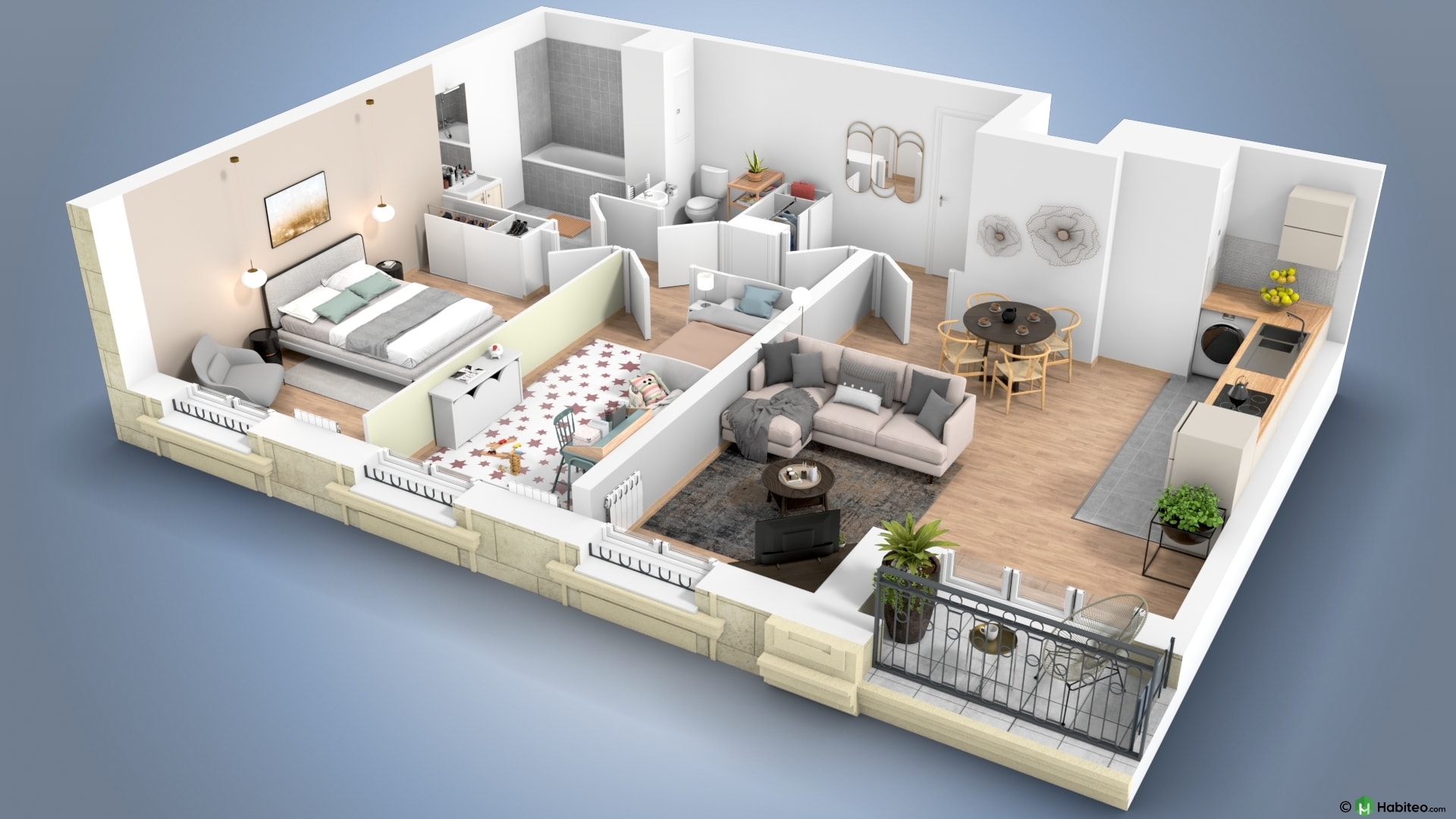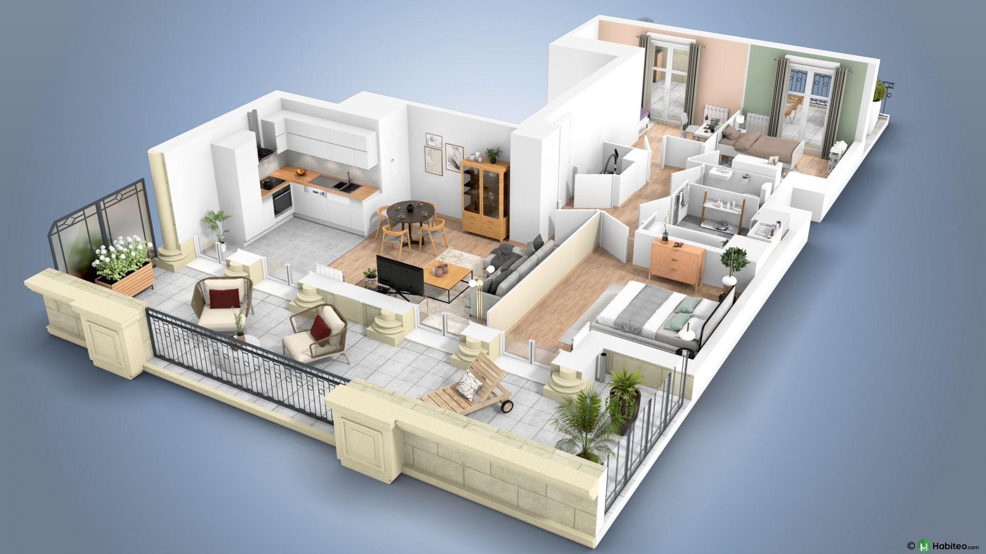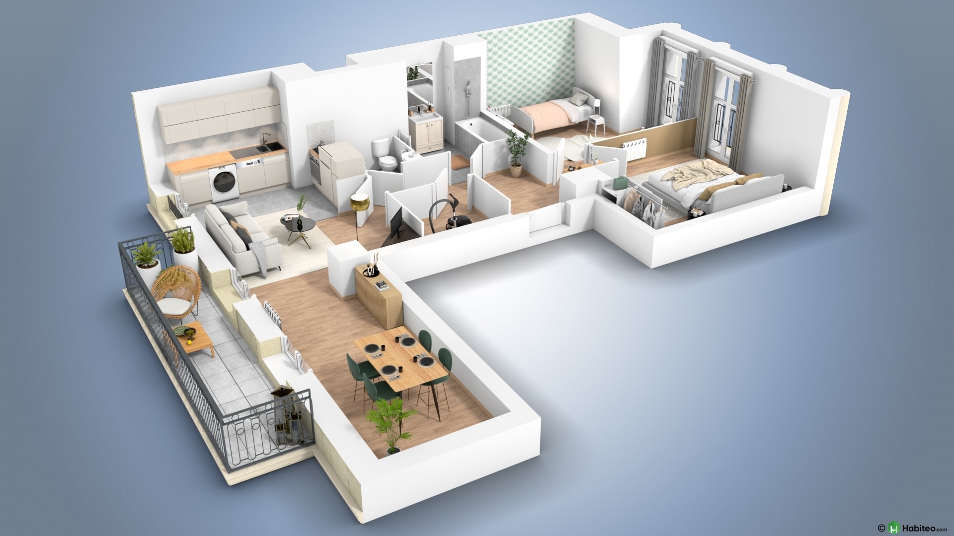 de l’appartement qui vous intéresse pour accéder à une vue 3D, non contractuelle à caractère d’ambiance
