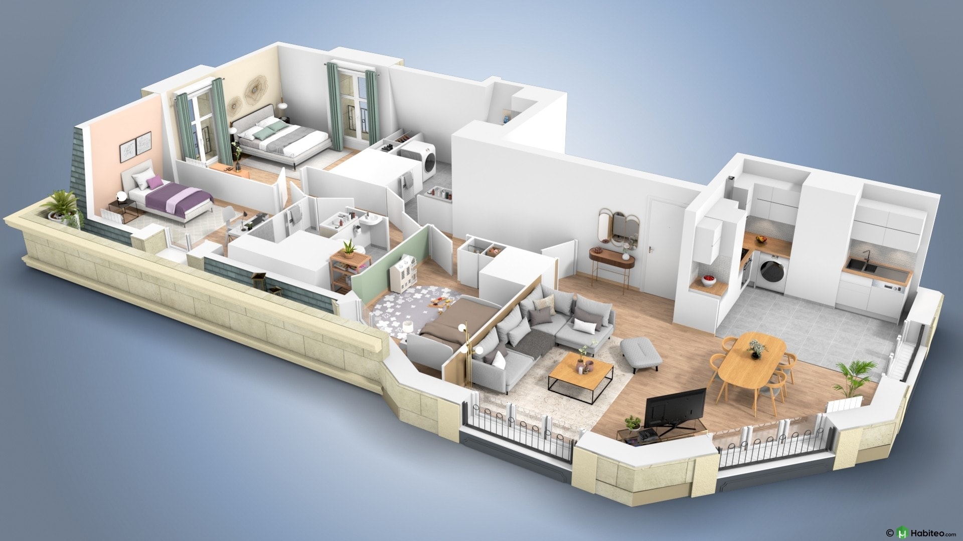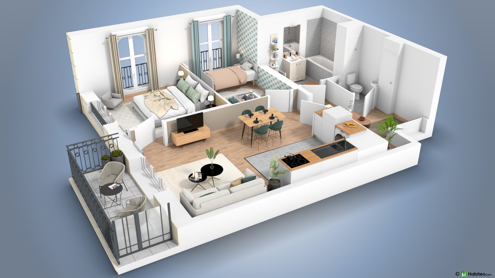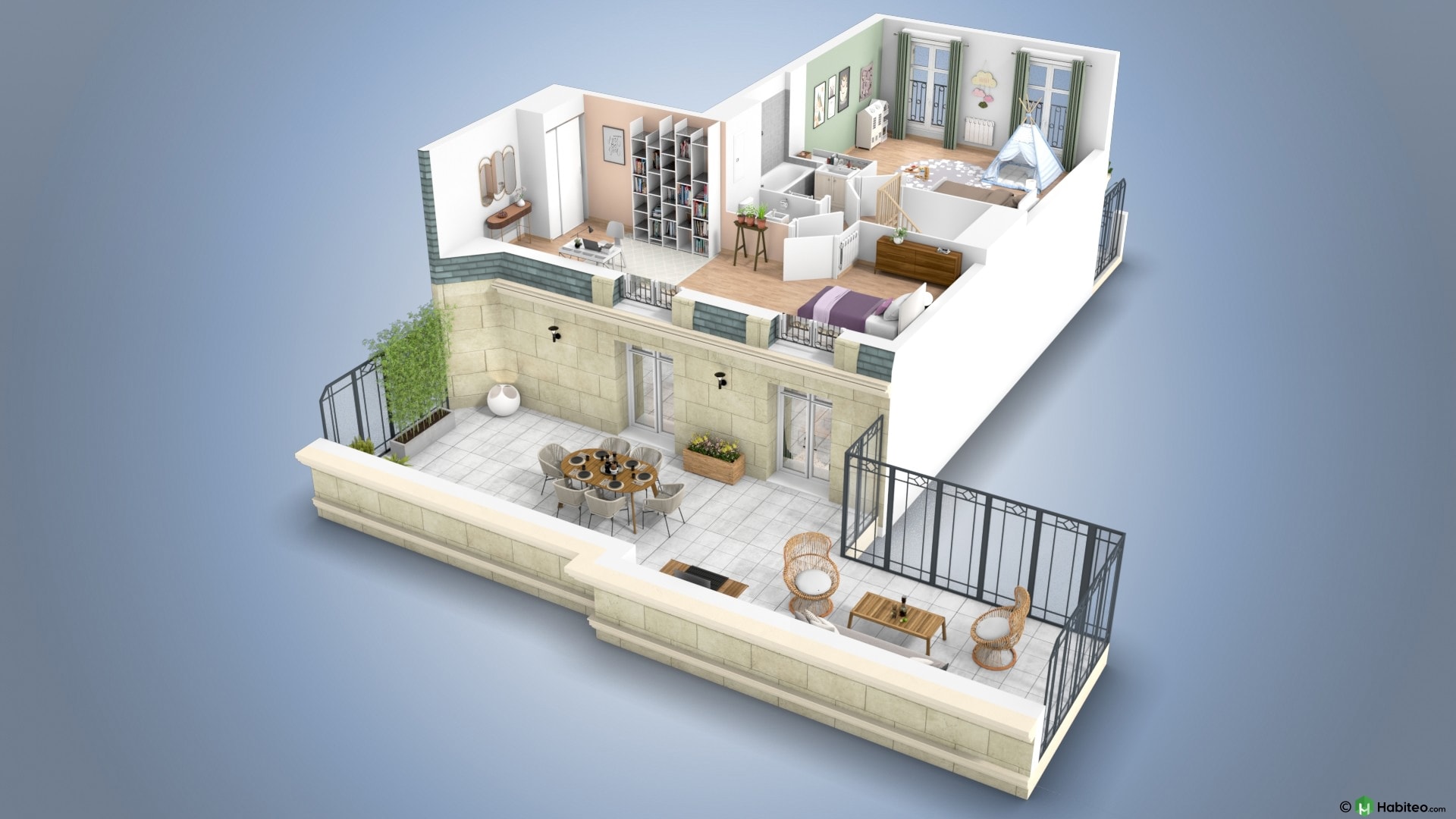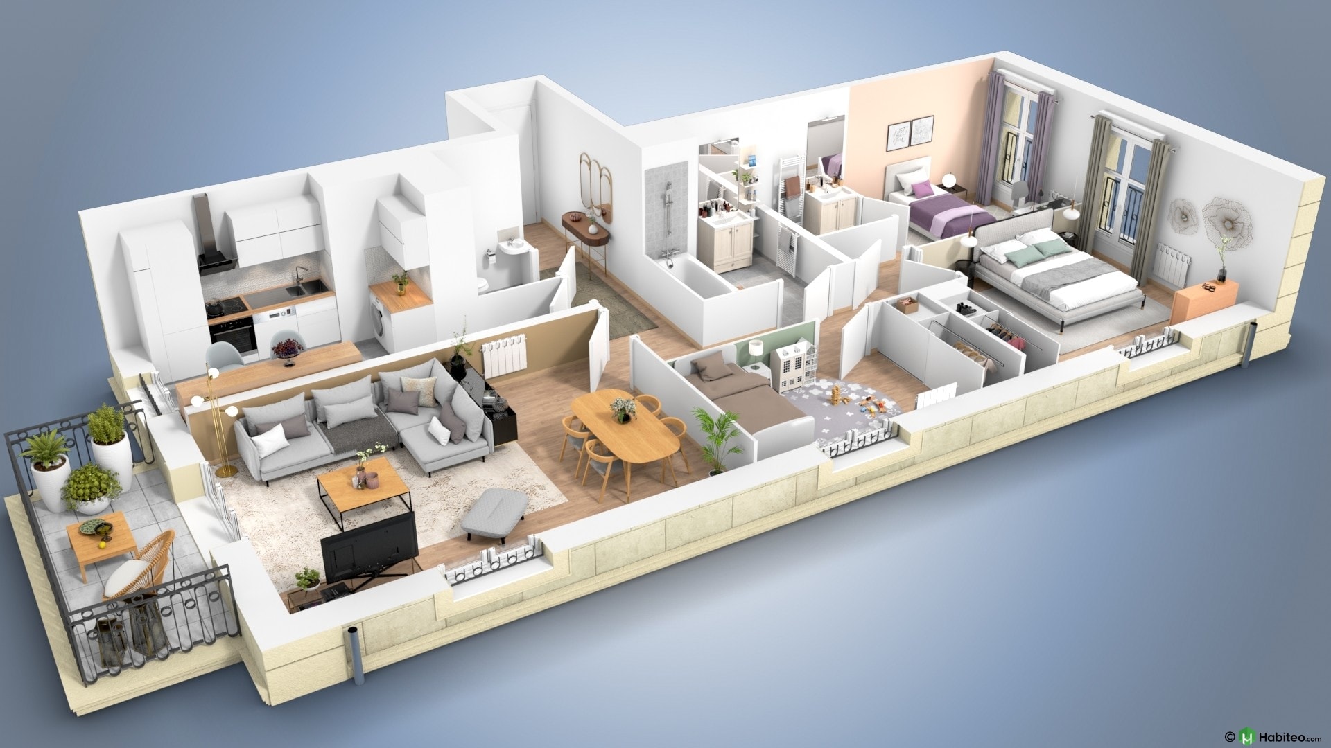 de l’appartement qui vous intéresse pour accéder à une vue 3D, non contractuelle à caractère d’ambiance