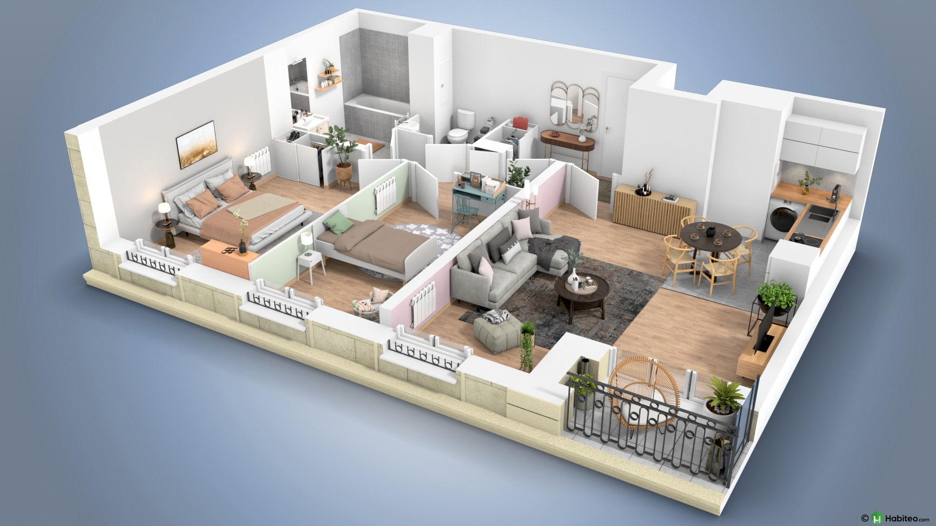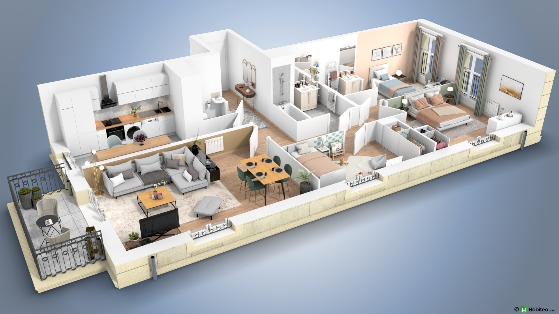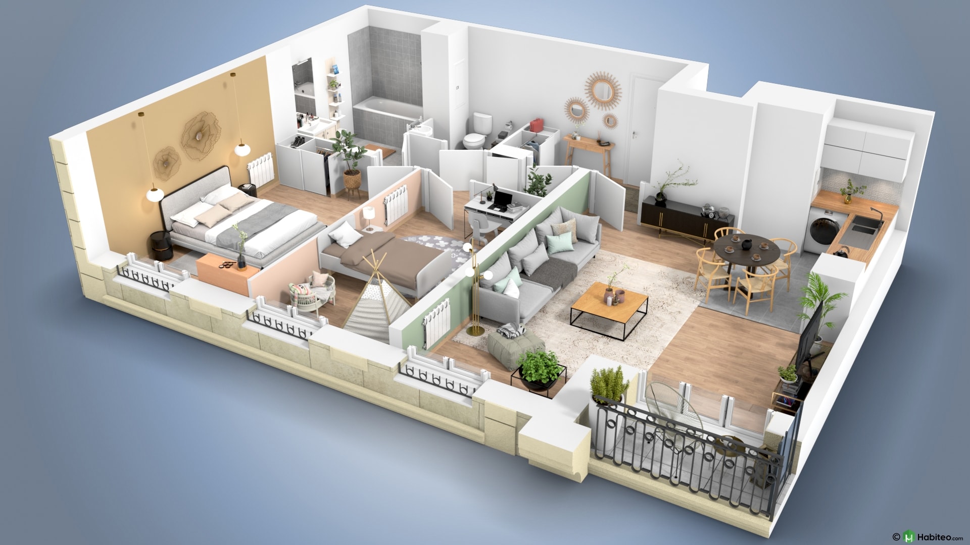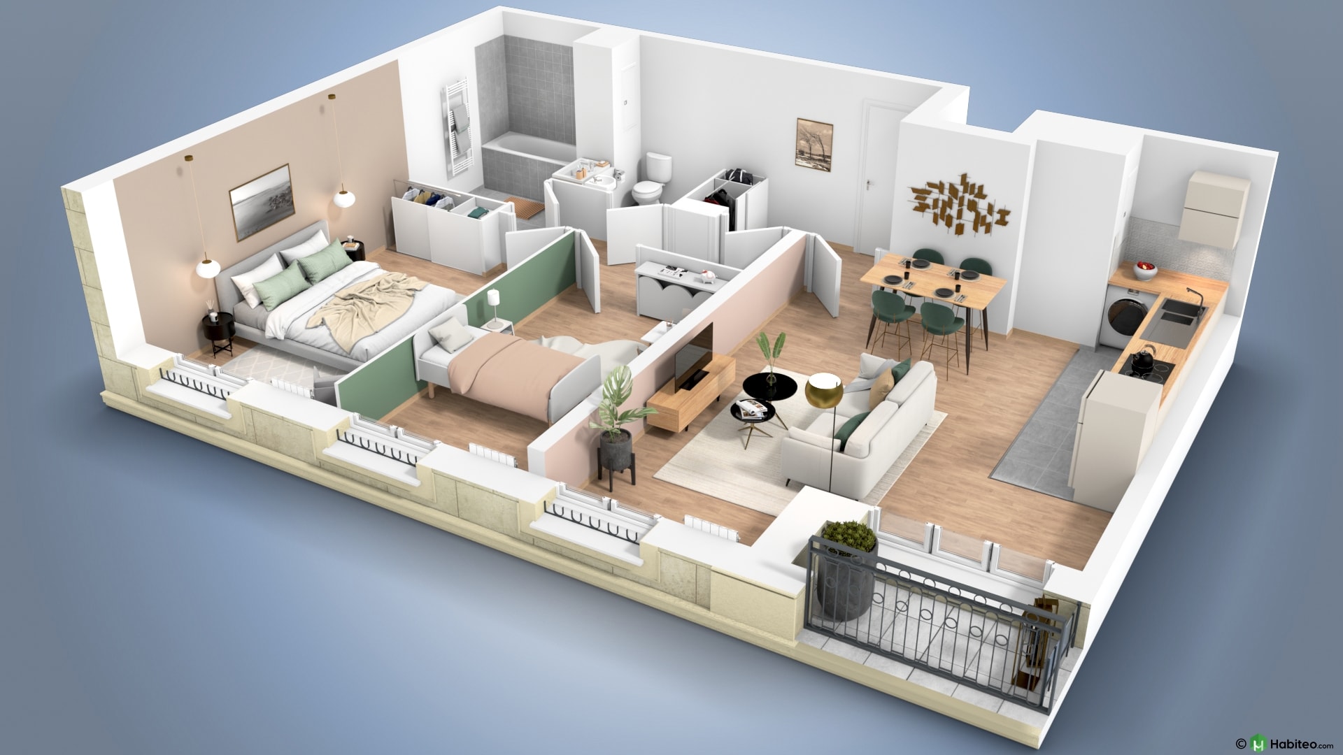 de l’appartement qui vous intéresse pour accéder à une vue 3D, non contractuelle à caractère d’ambiance