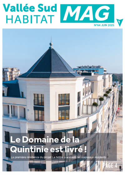 Savez-vous que Vallée Sud Habitat investit pour améliorer le cadre de vie de ses locataires ? Découvrez ce mois-ci les travaux d’embellissement des parties communes de Trivaux, à Clamart, le changement complet des ascenseurs de la résidence Malakoff à Châtillon, le fleurissement des espaces végétalisés et l’accompagnement des locataires lors de la mise en service de nos nouvelles résidences. Le dossier consacré au Domaine de la Quintinie, inauguré en mai dernier, présente les témoignages des premiers résidents et la résidence en images. Enfin, retrouvez nos conseils pour préserver la ressource en eau, mieux trier les déchets, savoir à qui s’adresser pour la gestion des encombrants.
